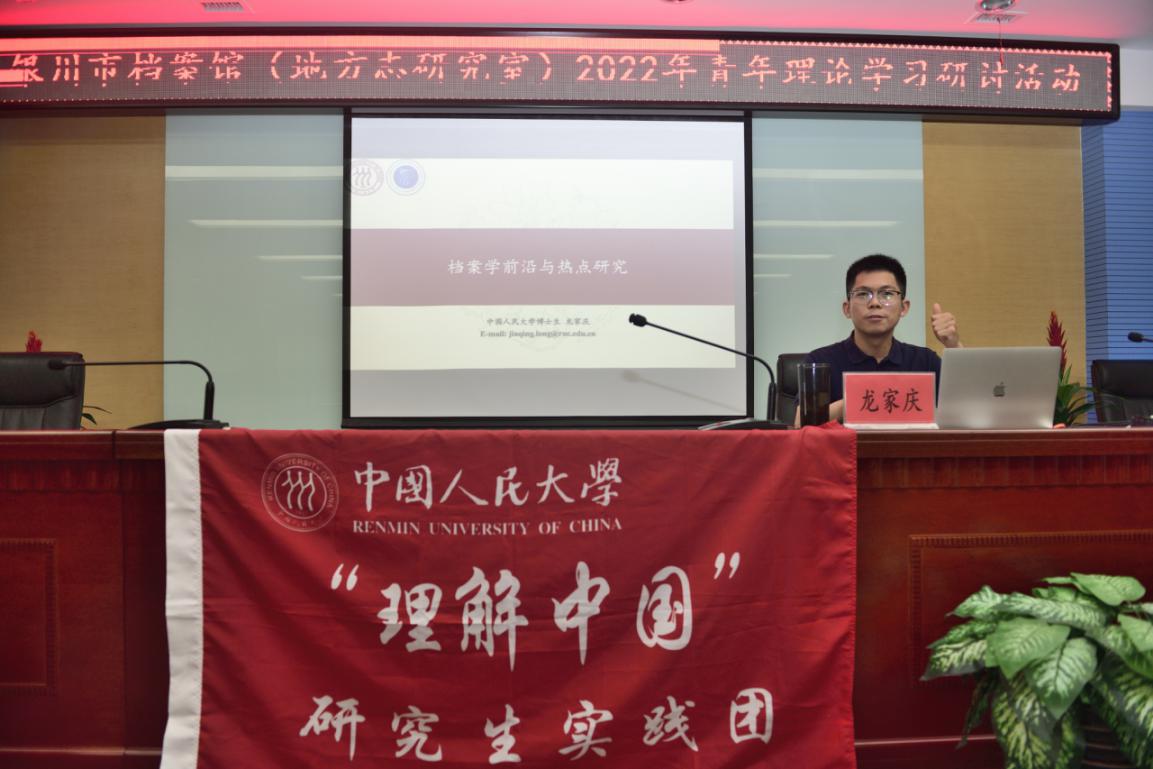 8月10上午,银川市档案馆(地方志研究室)召开了一场别开生面的青年理论学习研讨会,会议由中国人民大学在读博士生龙家庆以《档案学前沿与热点研究》为主题作档案学术研讨交流。