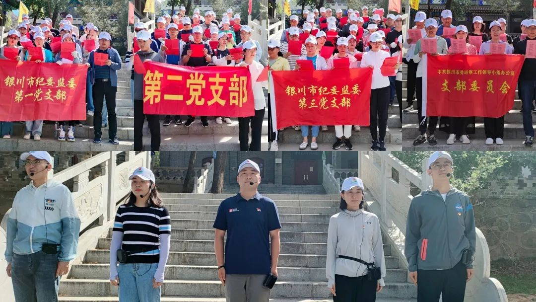 在贺兰山下,全体党员干部职工胸戴党徽,举起右拳,面向党旗重温入党誓词,用铮铮誓词宣示着对党的坚定信念和为党的事业奋斗终身的决心。