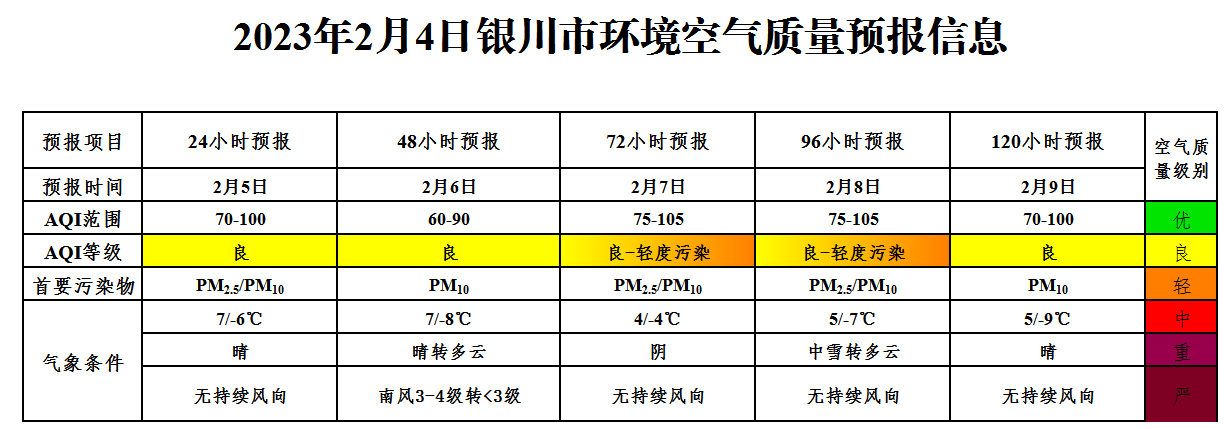 2023年2月4日银川市环境空气质量预报
