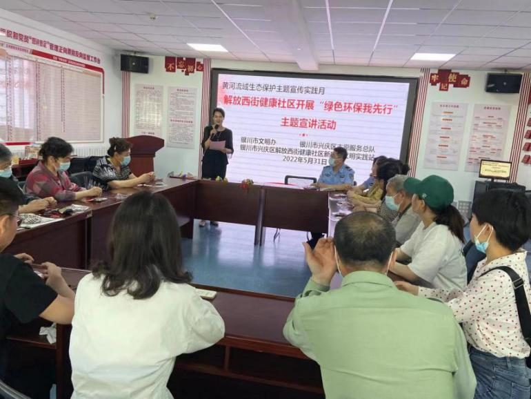 为积极响应银川市首届“黄河流域生态保护主题宣传实践月活动”号召,近期,银川市生态环境局兴庆分局联合解放西街健康社区开展“绿色环保我先行”主题宣讲活动。