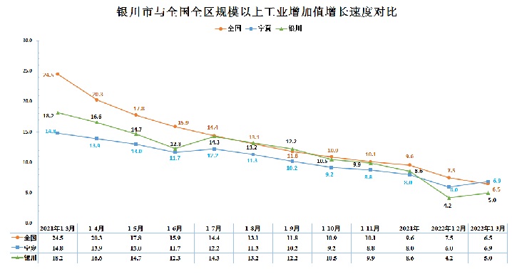银川市与全国全区规模以上工业增加值增长速度对比