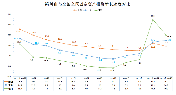 银川市与全国全区固定资产投资增长速度对比