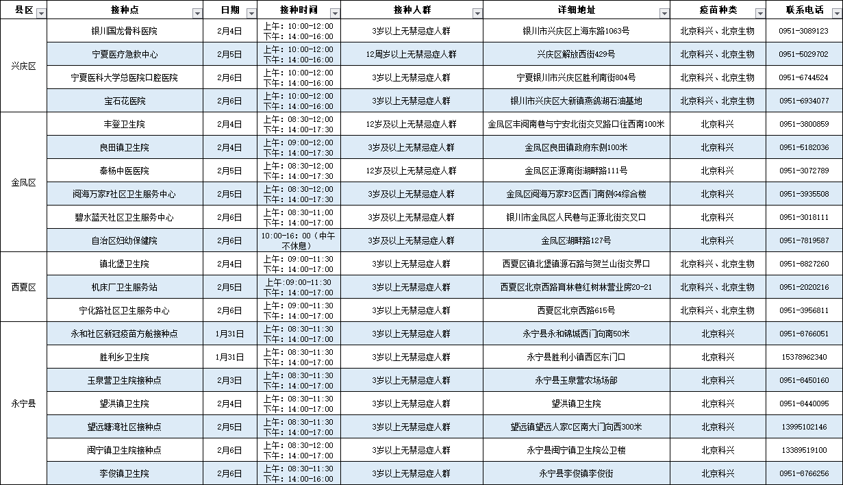 银川市2022年春节放假期间新冠疫苗接种点位设置情况