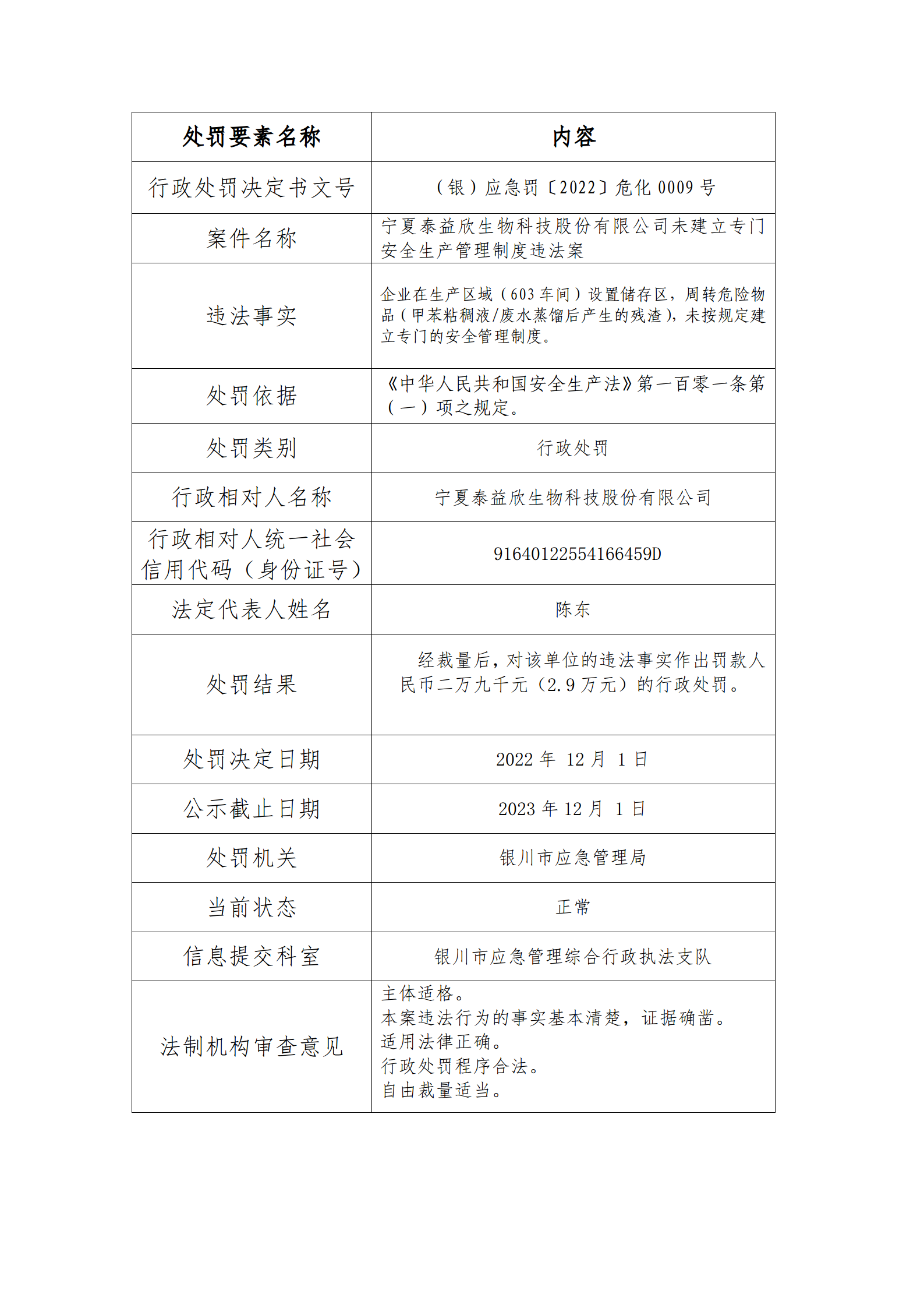行政处罚信息公示(泰益欣)