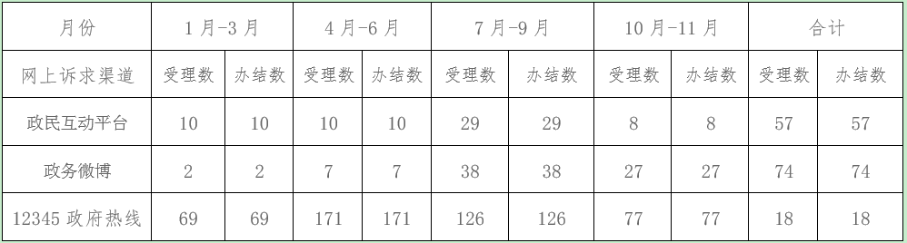 银川市自然资源局2019年群众网上诉求办理情况统计表