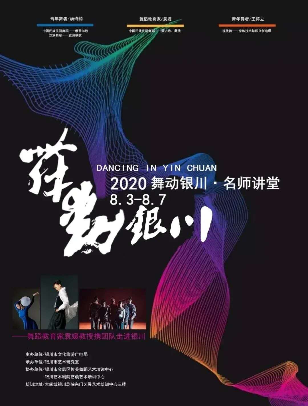 为培育和践行社会主义核心价值观,传承中华民族优秀传统文化,推动社会主义文化繁荣兴盛,同时加强文化科研单位与专业院校合作,进一步提升银川市艺术科研水平及广大舞蹈爱好者专业的提升和发展。8月3日,由银川市文化旅游广电局主办、银川市艺术研究室承办、银川市金凤区智美舞蹈培训中心和银川艺术剧院艺晨艺术培训中心协办,《舞动银川·名师讲堂》在大阅城银川剧院东门艺晨艺术培训中心三楼举行了开班仪式。