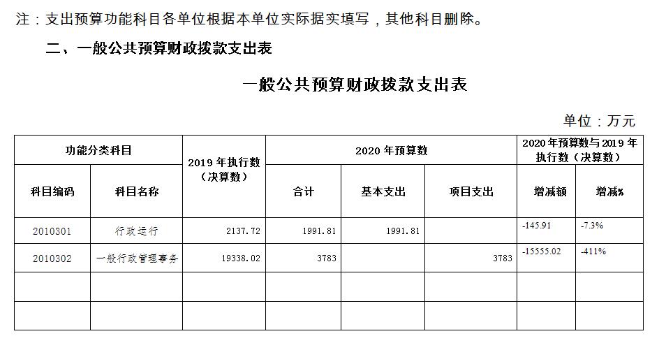 银川市审批服务管理局2020年一般公共预算财政拨款项目支出3783万元,其中:本年收入安排支出3783万元,上年结转结余资金安排支出0万元。包括:一般行政管理事务2020年预算3783万元,比2019年执行数(决算数)减少15555.02万元,下降411%。主要包括市民大厅运行费2078万元,政府购买服务专项经费1397万元,2020年政府投资项目工程咨询论证审核费300万元,银川市民党群活动服务中心活动经费8万元。详情如下: