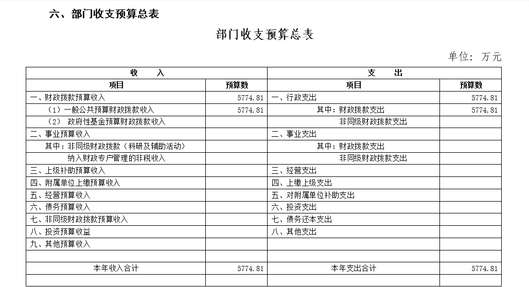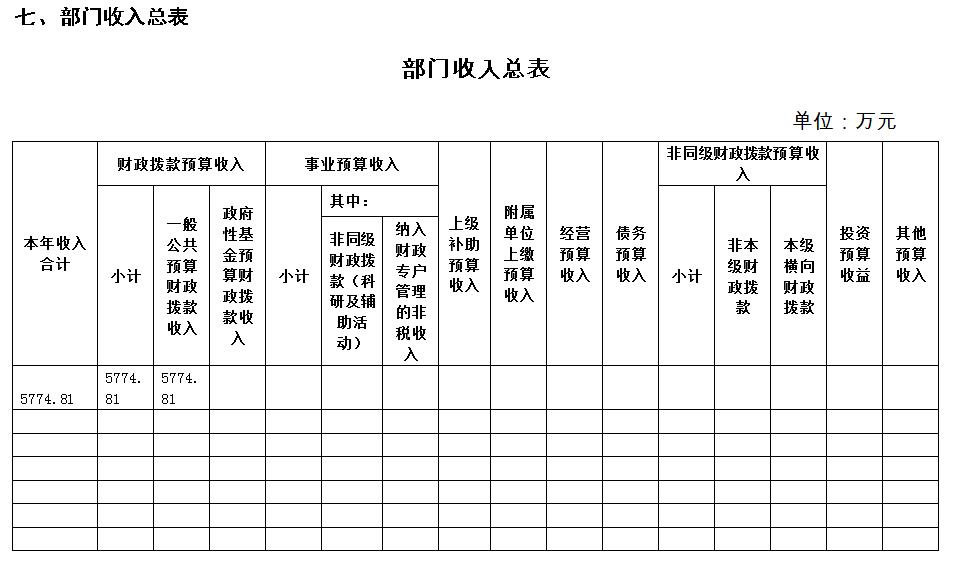 本年收入包括:财政拨款预算收入5774.81万元,占100%。