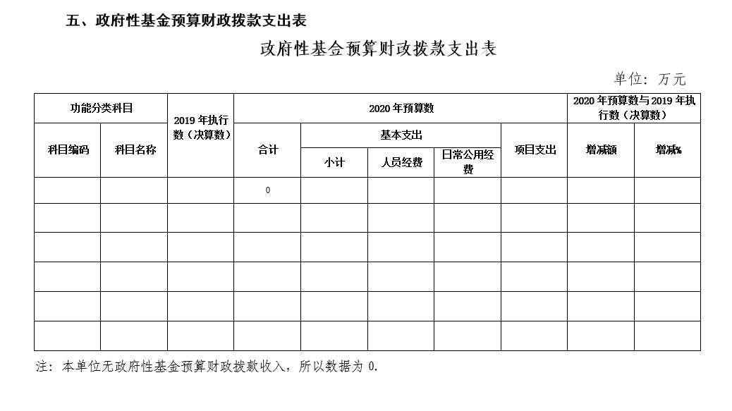 无政府性基金预算财政拨款单位:银川市审批服务管理局2020年无政府性基金预算财政拨款收支。