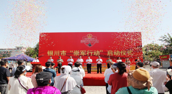 7月7日上午,银川市“崇军行动”启动仪式在新华商圈步行街举行,自治区退役军人事务厅、银川市人民政府、银川警备区、银川市退役军人事务局、商务局、文化旅游广电局、市场监督管理局、国资委及兴庆区人民政府等军地相关负责领导出席仪式。银川市退役军人事务局主要负责同志致辞。