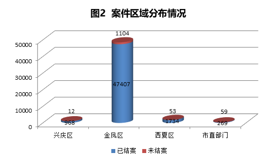 西夏区共受理案件1787件,办结1737件,办结率97.20%。主要问题一是部分案件因职责划分权属不清造成多次回流、转办,导致案件办理效率低下;二是部分案件处置流程不规范,对无问题描述、无结案照片的案件,均予以立案、办结处理。