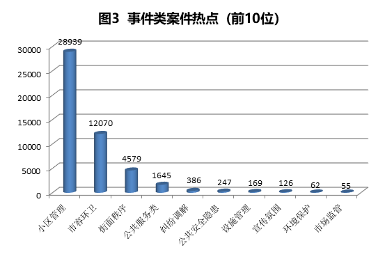 3.街面秩序4579件,主要反映早市管理、流浪乞讨、店外经营等问题。