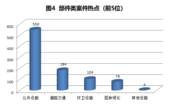 4.园林绿化79件,主要反映绿地泥土裸露、绿地指示牌破损等问题。