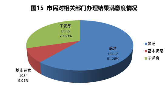 部分市民未收到办理部门电话回复的办理结果。在已回访的21406件工单中,市民收到办理部门电话回复18162件,占回访总量的84.85%,未收到回复3244件,占回访总量的15.15%。