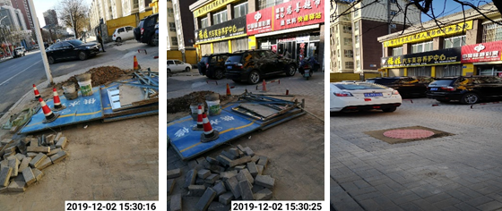 典型案件一是12月3日,金凤区网格员上报案件:庆丰街与五里台路交叉口慈善超市门口人行道施工地砖洒落满地无人监管,违背文明施工相关规定。市城运中心立即转派中铁水务集团有限公司,经现场核实,当日下午将施工道路地砖整理清洁归位。