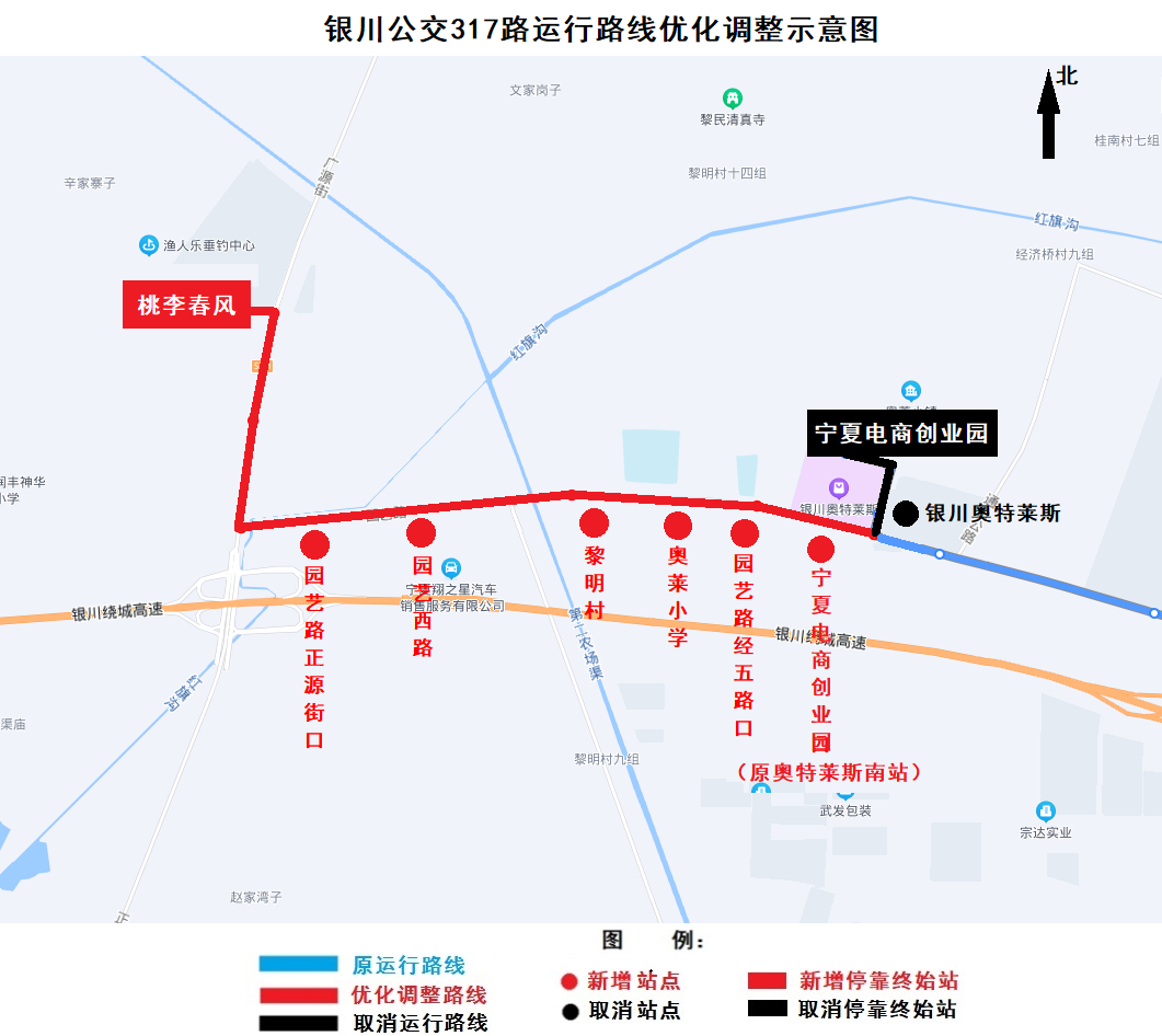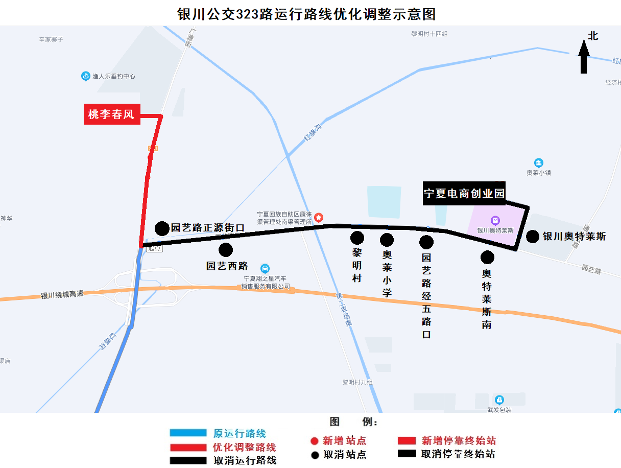 取消7站:如意湖路国道口、海吉星物流园、宁夏园艺产业园、宁夏园艺产业园西门、园艺路奥莱路口、银川奥特莱斯、宁夏电商创业园
