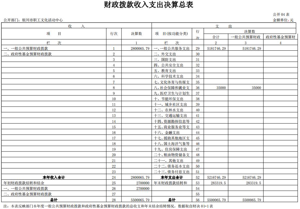 四、财政拨款收入支出决算总表