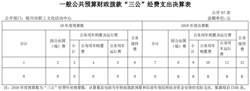 银川市职工文化活动中心2018年度未发生三公经费