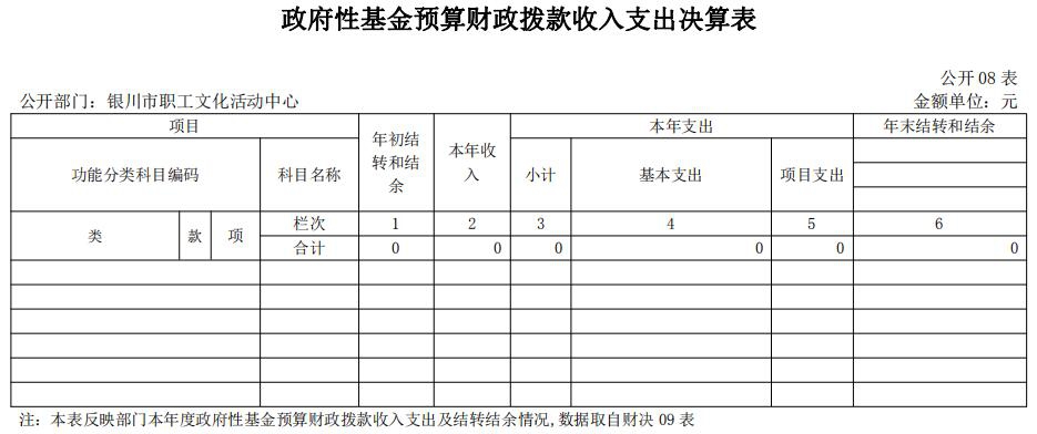银川市职工文化活动中心2018年度未发生政府性基金预算财政拨款收入支出数据