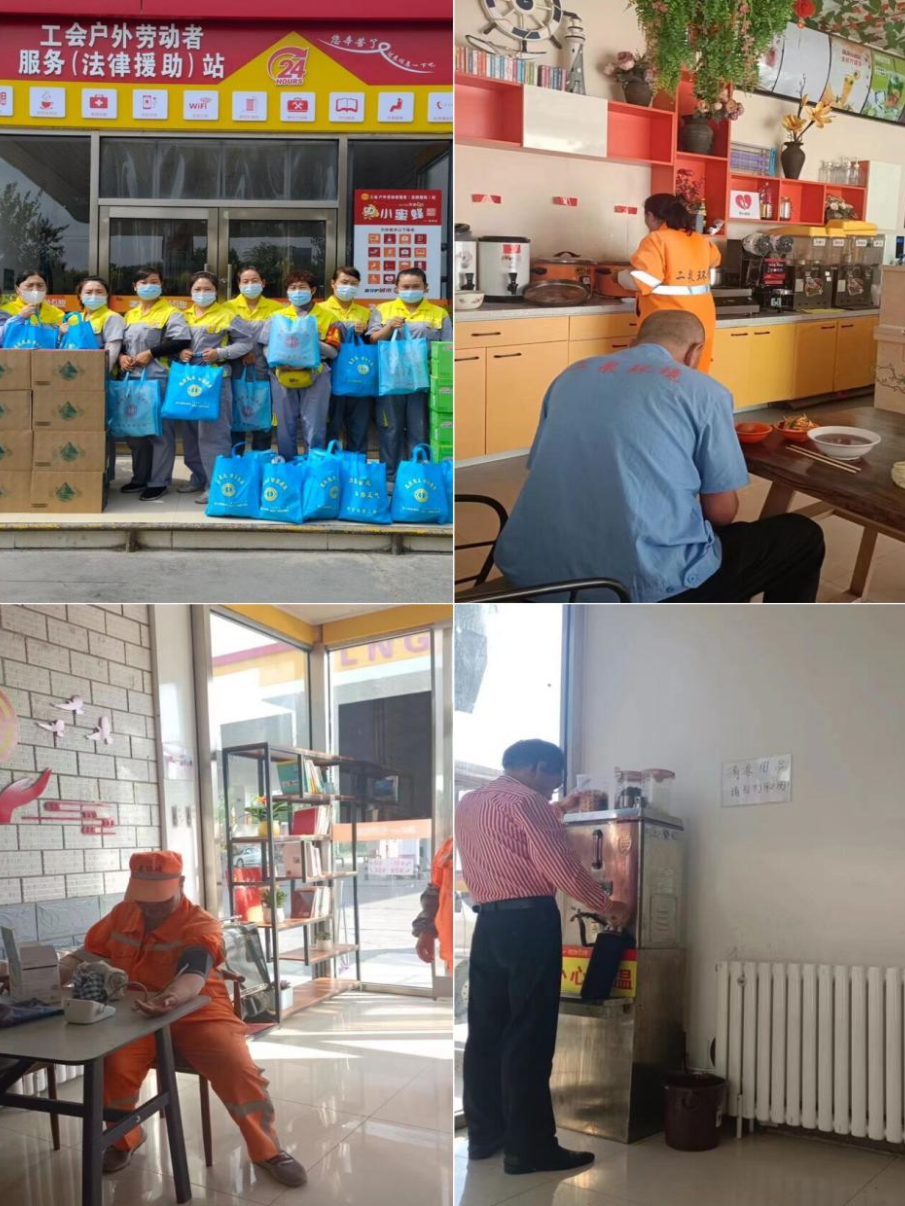 今年来,贺兰县总工会面向广大户外劳动者问计问需,分区域在全县范围内深入调研,按照“九有”标准(即:有场所、有标识、有人员、有服务、有设施、有制度、有导图、有保障、有监督),新建成各具行业、区域特色的工会户外劳动者服务(法律援助)站16家,截至目前,全县共有29家工会户外劳动者服务站,充分满足全县各类户外劳动者群体的需求,切实解决了他们“吃饭难、喝水难、休息难、如厕难”等实际问题。较有代表性的有:在贺兰工业园区,以电商物流园“小蜜蜂”社区为辐射,建成了“小蜜蜂快乐驿站”,服务园区户外劳动者;在“饿了么”外卖配送服务站点,建成了主要服务外卖送餐员的工会户外劳动者服务(法律援助)站;与贺兰县交通执法大队联合建成“司机之家”,致力于服务过往中巴车司机、交通警察、环卫工人、快递员等群体;在贺兰美食美客户外劳动者服务站,为过往的快递员、送餐员、环卫工人等提供免费面包、餐点;在贺兰工业园区109国道与丰庆路交叉口交通枢纽处,建成贺银油气工会户外劳动者服务站,24小时服务过往货车司机、出租车司机等……