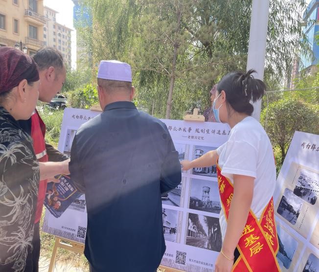 活动现场,宣讲小分队以展板形式向居民们展示、讲解了银川建城史、城市演变、老银川记忆、历史街区、规划沿革等内容,通过互动交流、发放宣传彩页,让居民们多角度、全方位了解城市、熟悉规划,提升居民对家乡未来发展的热情和关注。