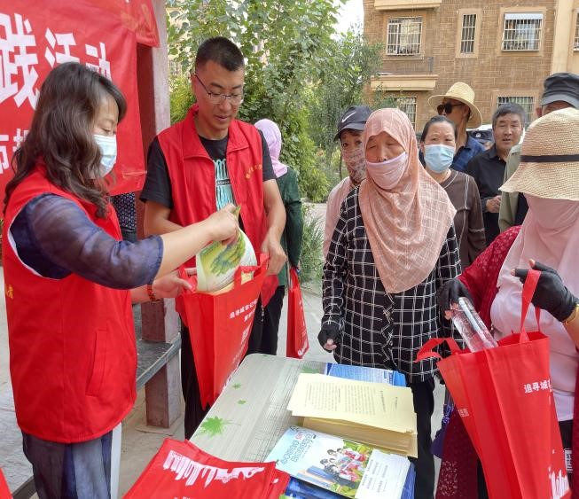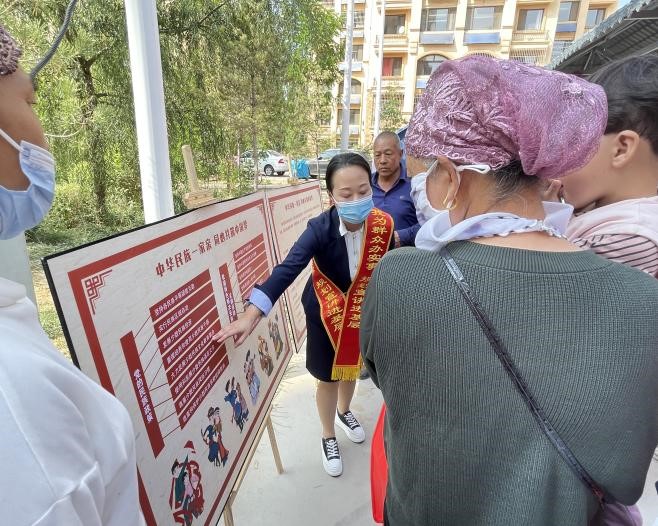 2022年9月是宁夏第39个“民族团结进步月”、银川市第24个“民族团结进步月”。为落实“喜迎二十大·奋进新宁夏·同心跟党走”宣传主题,进一步深化民族团结,营造浓厚宣传氛围,宣讲小分队设置展板、悬挂条幅,深入讲解了“三个离不开”及“五个认同”等内容,并对我国统一多民族国家的基本国情、中国特色解决民族问题的正确道路和各民族交往交流交融的生动实践进行宣讲,引导居民树牢正确的国家观、历史观、民族观、文化观、宗教观,进一步坚定理想信念,使铸牢中华民族共同体意识深入人心,以实际行动践行听党话、感党恩、跟党走,以强烈的责任感、使命感为银川市打造铸牢中华民族共同体意识示范市贡献力量。